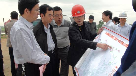 調(diào)研組聽取康山大堤除險(xiǎn)加固工程建設(shè)情況匯報(bào)并察看施工現(xiàn)場