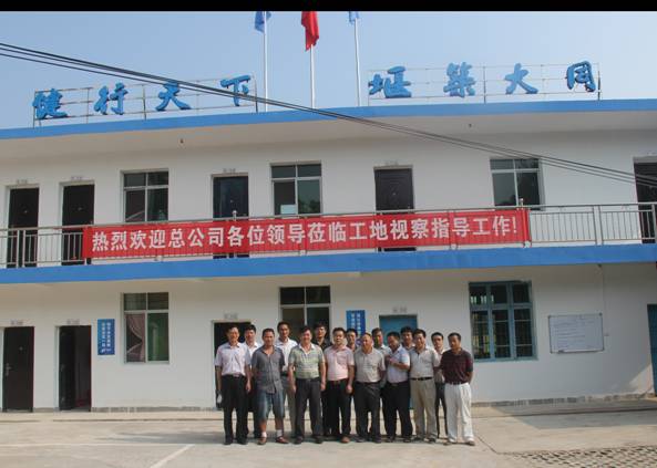 董事長、總經(jīng)理王元旦到樟山防護(hù)工程項(xiàng)目部檢查指導(dǎo)工作,并在項(xiàng)目部生活樓前與相關(guān)人員合影
