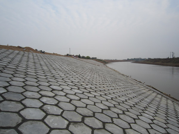 小港4標(biāo)完工的砼預(yù)制塊護(hù)坡