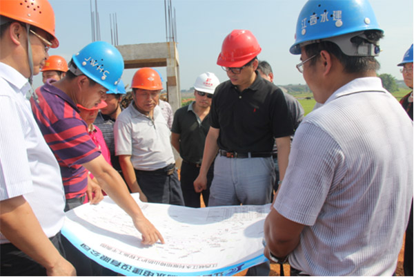 孫廳長對工程后續(xù)施工安排及后續(xù)工程的施工難點和重點進行了詳細的了解,并咨詢了工程施工進度是否會影響峽江樞紐下閘蓄水。項目經(jīng)理彭燦華、彭紅軍都明確表態(tài),我們一定會科學(xué)合理地安排施工計劃,加快工程施工進度、保證工程質(zhì)量,確保工程進度和高程達到“七一”下閘蓄水的目標(biāo)。