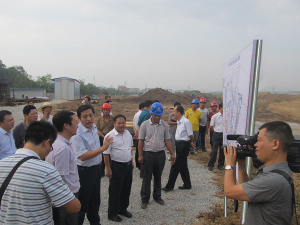 萍鄉(xiāng)市市長李小豹一行在施工現(xiàn)場聽取情況匯報