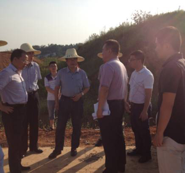 集團(tuán)資訊 2015年07月13日下午,江西省水利廳副廳長廖瑞釗、五河辦黃國金等領(lǐng)導(dǎo)一行來到我公司承建的江西省五河治理贛州市城市防洪工程社背堤現(xiàn)場視察指導(dǎo)工作。