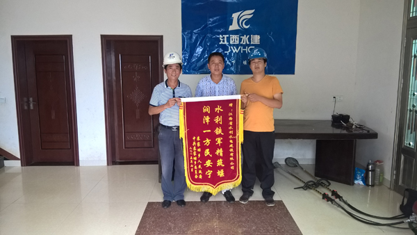 集團(tuán)資訊 2015年7月24日,在一陣熱烈的鞭炮聲中,星子縣蘇家垱鄉(xiāng)人民政府丁鄉(xiāng)長等一行,托舉著一面寫有“水利鐵軍精筑堰,潤澤一方民安寧”的錦旗送到了江西水建星子縣蛟塘鎮(zhèn)防洪工程施工項目部。
