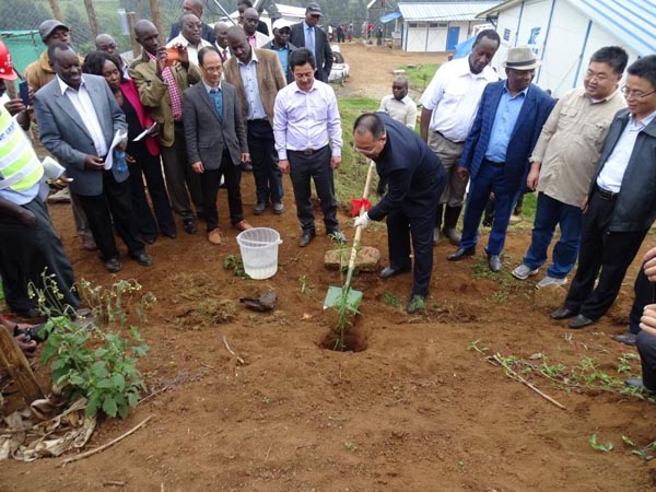 儀式啟動(dòng)之前,由KTDA茶葉公司董事會(huì)主席親自在現(xiàn)場(chǎng)操作挖機(jī),正式啟動(dòng)儀式。隨后,與會(huì)貴賓還在項(xiàng)目現(xiàn)場(chǎng)種植了象征希望和發(fā)展的樹苗。