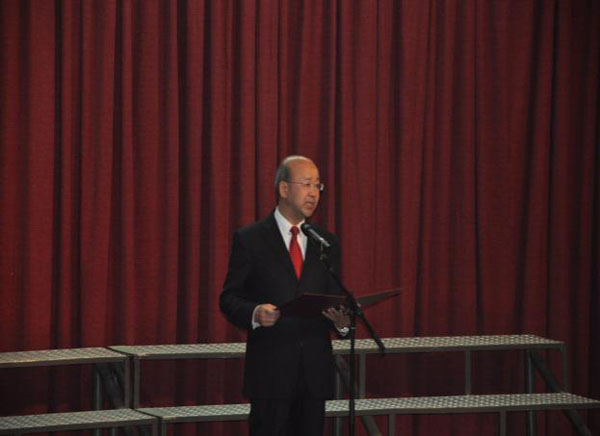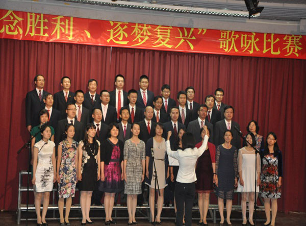 中國(guó)駐肯尼亞大使劉顯法在合唱比賽前發(fā)表講話,祝賀中國(guó)人民抗日戰(zhàn)爭(zhēng)暨反法西斯戰(zhàn)爭(zhēng)勝利70周年,并向全體中資員工致以節(jié)日的問(wèn)候,及對(duì)各中資公司參賽人員表示誠(chéng)摯的祝愿。隨后,合唱比賽在紅色經(jīng)典歌曲——《游擊隊(duì)之歌》中拉開了序幕。