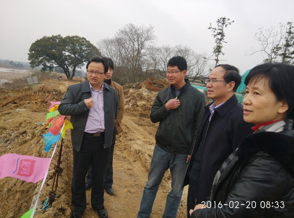 省水利廳副廳長楊丕龍(右二)一行來到施工現場指導工作