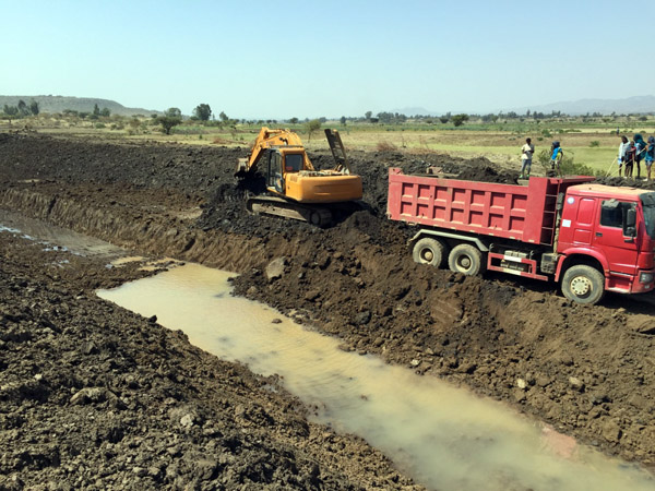部長Motuma Mekesa一行于上午抵達項目施工現(xiàn)場,隨后對項目渠首及總渠段進行參觀考察。埃塞公司副總經(jīng)理兼項目經(jīng)理黃生寶向部長介紹了建設項目概況及項目施工進度,就項目設計、征地等提出了建設性意見和建議,表達了以“服務社會”為宗旨,與各方一道以最快的速度推進項目建設的積極態(tài)度。項目經(jīng)理黃生寶表示,我們將秉承我公司“健行天下,堰筑大同”的精神,以最好的質(zhì)量,最快的速度保證項目的實施。部長先生對我們的現(xiàn)場建設以及積極的態(tài)度表示了肯定,要求設計、征地以及業(yè)主單位積極與施工單位合作,保證項目施工質(zhì)量,加快項目施工速度。同時,相信我公司能堅定信心,積極應對困難與挑戰(zhàn),在有限的時間內(nèi)圓滿完成任務。