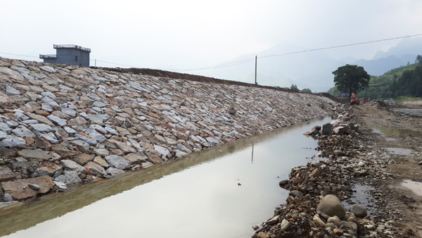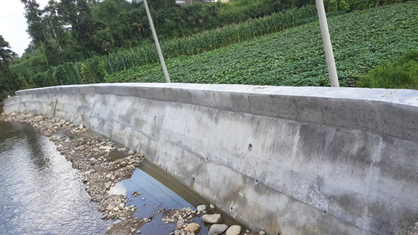 已完成的干砌石護(hù)坡和防洪墻片段