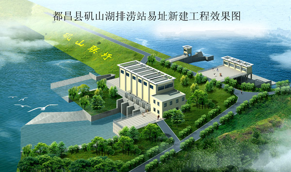 為配合江西省都昌縣打造“城依水建、水在城中、山水相依”的宜居園林城市建設(shè)重點(diǎn)項(xiàng)目——濱水西區(qū)開(kāi)發(fā)的需要,都昌縣磯山湖排澇站從磯山湖上壩易址磯山湖下壩,新建工程由電排站和自排閘組成,泵站裝機(jī)容量4×800kw,治澇標(biāo)準(zhǔn)采用10年一遇暴雨,治澇面積44平方公里,是原磯山湖上壩排澇站排澇能力的2倍,屬中型排澇站。