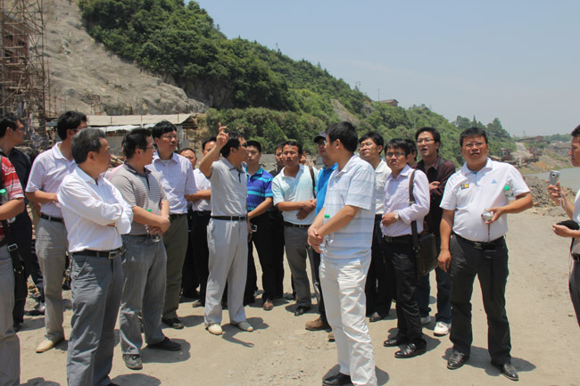 28日,學習組在七一水庫管理局葉局長及項目法人謝局長的陪同下先參觀了大壩施工現(xiàn)場,然后參觀了溢洪道。七一水庫除險加固工程由我公司承建,工程質量多次受到水利部、省水利廳、地方政府領導的好評。在參觀現(xiàn)場,負責該項目施工的項目經理彭燦華就如何抓好工程質量管理問題向大家作了簡要介紹;總工程師吳鐵凡就如何運用施工技術、施工工藝來保證工程質量進行了講解;董事長總經理王元旦用風趣幽默的提問方式,結合施工現(xiàn)場情況,對工程質量管理的五要素“人、機、料、法、環(huán)”逐一進行了分析闡述,他指出,人是工程管理的首要因素,也是決定因素,如果人沒有質量意識,根本不可能生產出讓顧客滿意的產品。同時強調,質量是企業(yè)的生命,是企業(yè)發(fā)展的根本保證,在市場競爭十分激烈的今天,如何提高施工質量管理水平是每一位項目經理、每一位管理者必須不斷思考的問題,他要求大家要向七一水庫施工項目部學習,學習他們抓好每道工序,把握每個環(huán)節(jié),注重每個細節(jié),踏實做好工程質量的敬業(yè)精神,爭取多創(chuàng)優(yōu)良工程、精品工程,進一步提高公司的市場聲譽。