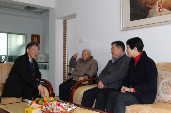 1月22日,省水利廳黨委書記、廳長(zhǎng)羅小云率姚毅臣副廳長(zhǎng)、廳機(jī)關(guān)黨委書記占任生前往公司親切看望慰問離休老干部,公司董事長(zhǎng)王元旦等陪同慰問。