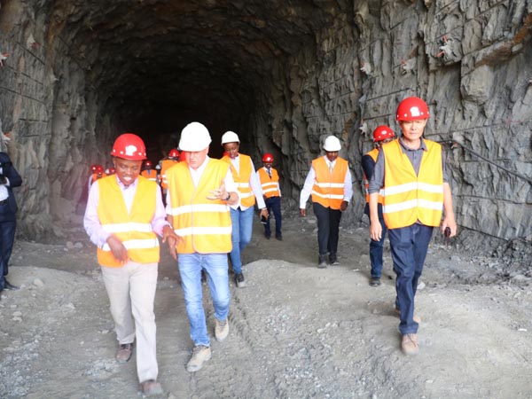 三國(guó)部長(zhǎng)對(duì)隧洞進(jìn)行參觀(guān)