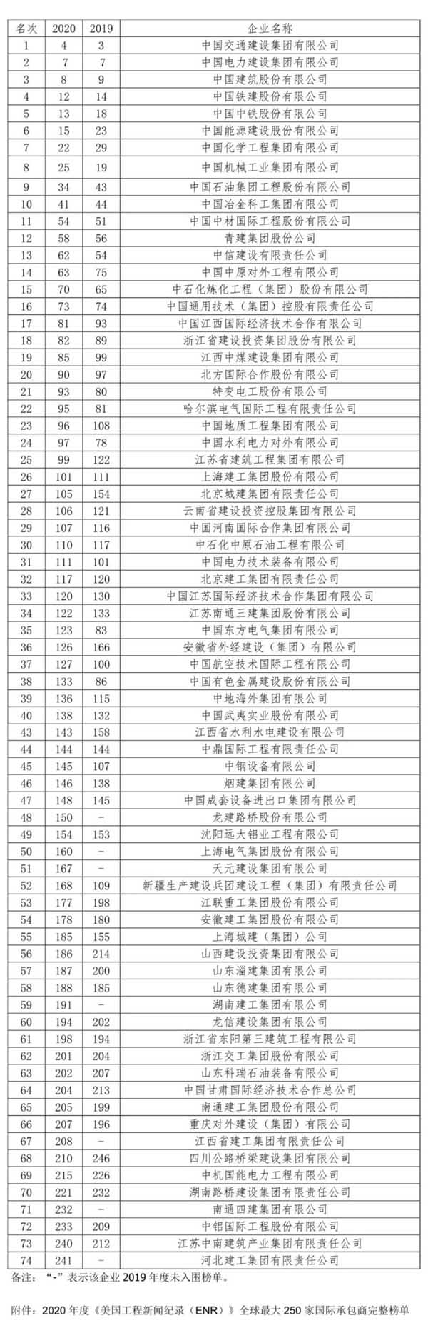美國(guó)當(dāng)?shù)貢r(shí)間8月20日,2020年度美國(guó)《工程新聞紀(jì)錄(ENR)》“全球250家國(guó)際承包商”榜單發(fā)布。
