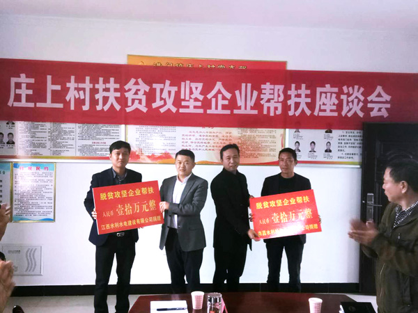 為認真貫徹落實黨的十九大關(guān)于堅決打贏脫貧攻堅戰(zhàn)的新部署新要求,踐行企業(yè)的社會責任。11月17日,公司副總經(jīng)理王俊華同志率撫州廖坊灌區(qū)二期工程施工總部負責人胡福民、項目財務部負責人肖志兵代表江西省水利水電建設(shè)有限公司前往南城縣洪門鎮(zhèn)參加莊上村扶貧攻堅企業(yè)幫扶座談會,并將公司捐助的10萬元扶貧資金送至莊上村村委會。
